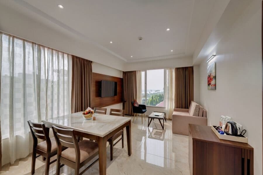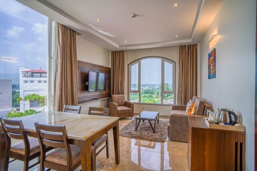 The Presidential Suite at The Fern Sardar Sarovar Resort, Ekta Nagar (Kevadia – Statue of Unity) offers the pinnacle of luxury and elegance. Designed for discerning travelers, this expansive suite features sophisticated interiors, a lavish living space, and premium amenities to ensure an unparalleled stay. Overlooking the serene landscape of Kevadia, it provides an exclusive retreat near the Statue of Unity. Whether you're visiting for business or leisure, the Presidential Suite promises a refined and indulgent experience, blending comfort with breathtaking surroundings.